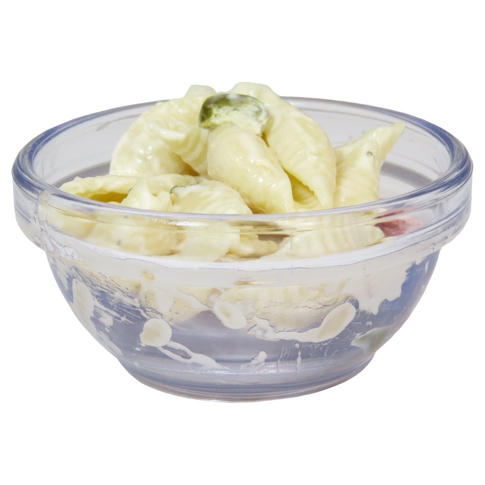 - This fresh, pre-made pasta salad is an easy and convenient item to add to the menu. A creamy ranch dressing highlights a blend of shell macaroni, cucumbers, red and green peppers and red onion in this pasta salad.