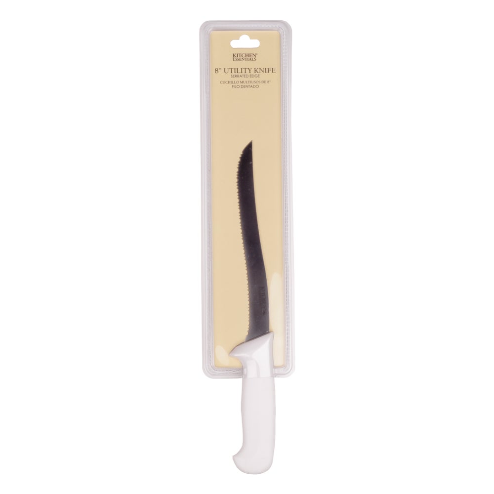 Kitchen Essentials 8 Inch Serrated Edge Stainless Steel Utility Knife, with White Plastic Handle, 1/Each