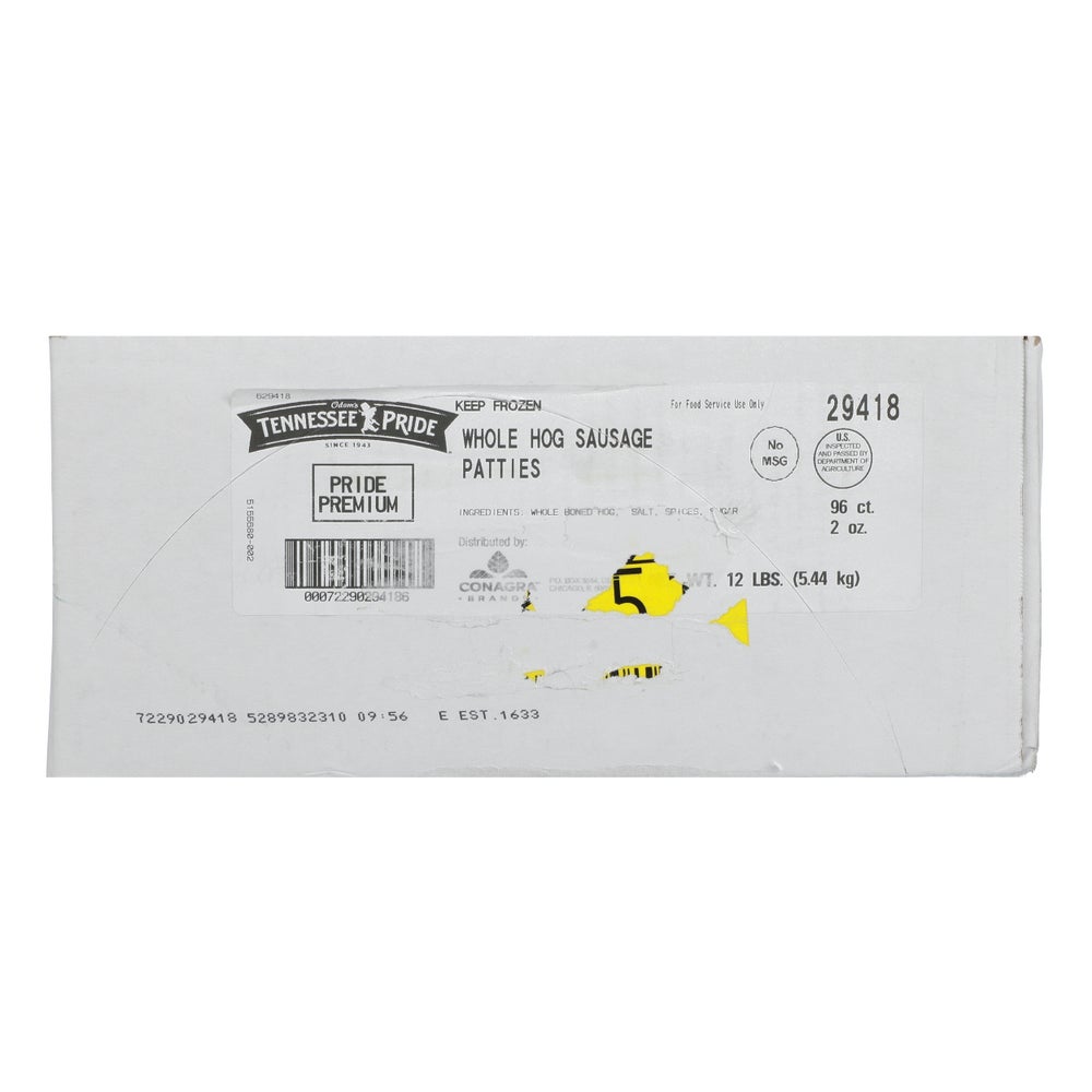 Odom's Tennessee Pride Whole Hog Breakfast Sausage, Patties, 2 Ounce, Raw, Frozen, 2 Ounce, 12 Lb Package, 1/Case