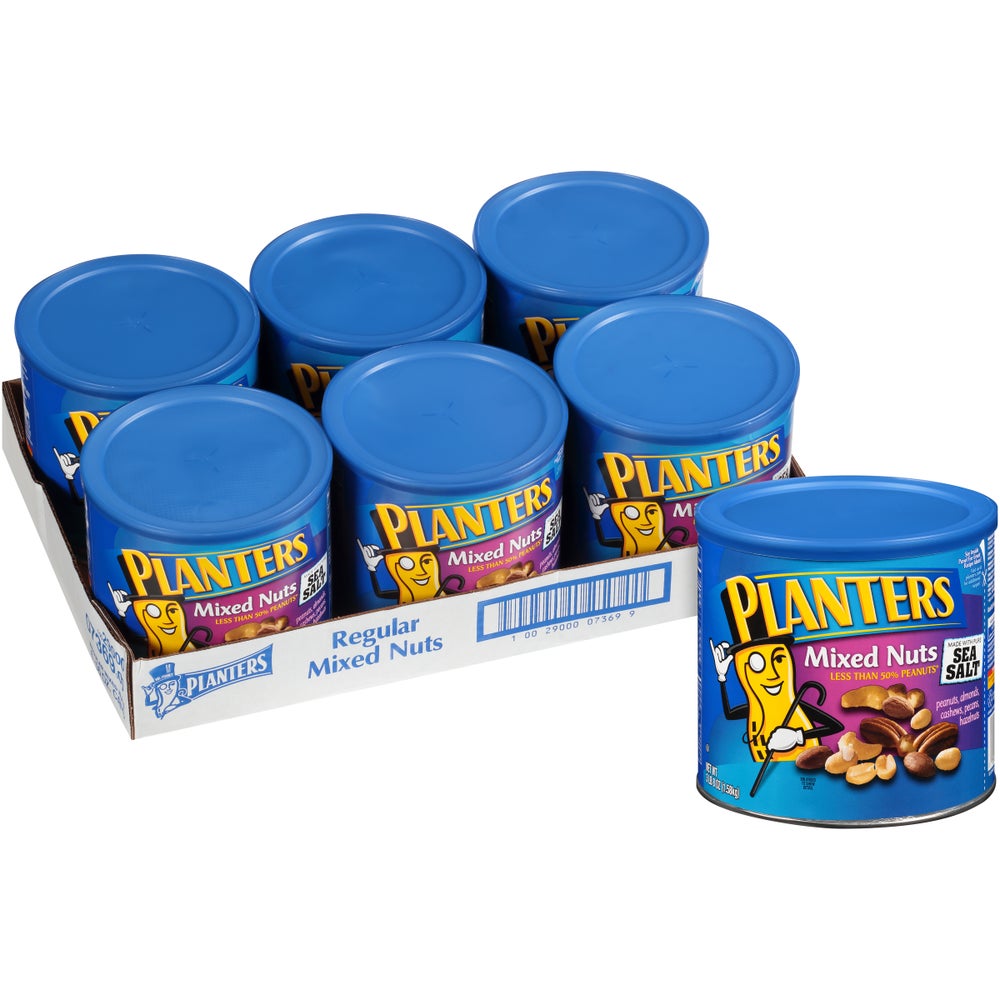 Planters Salted Mixed Nuts, with Peanuts, 56 Oz Can, 6/Case