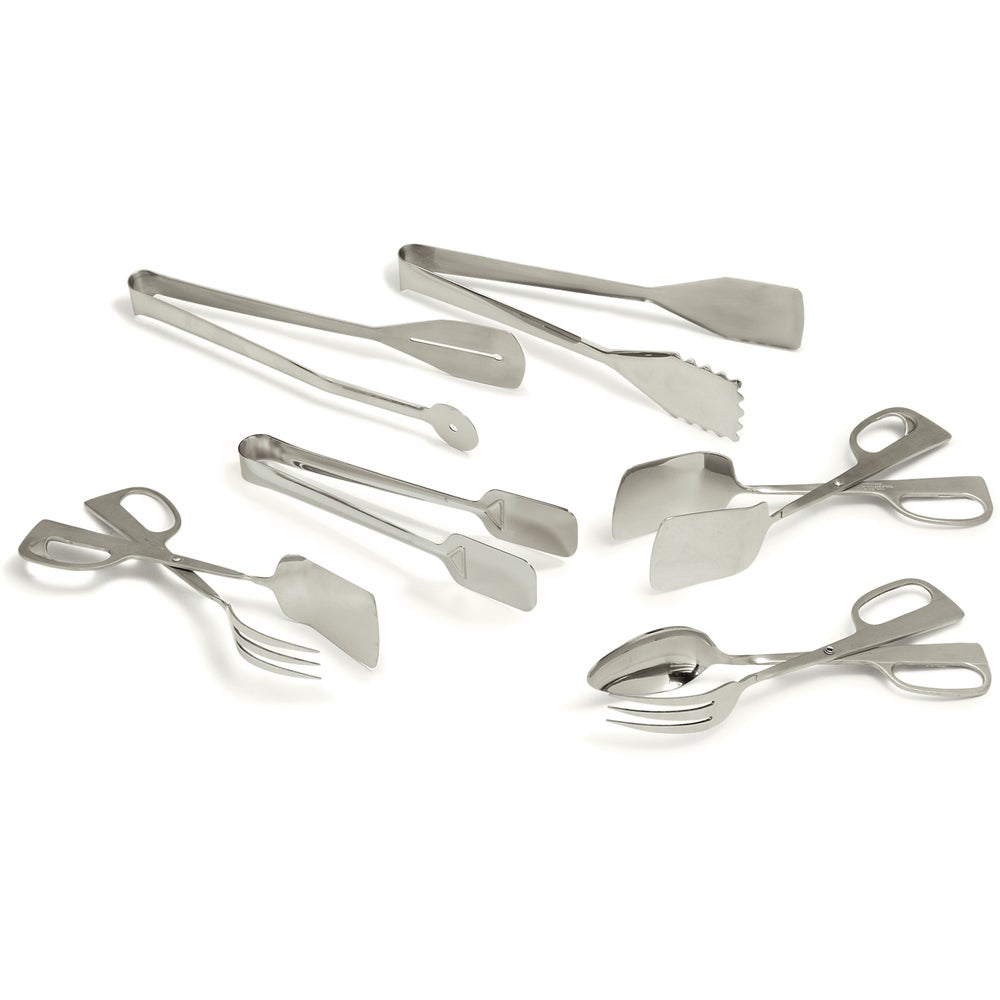 These heavy-duty tongs are made with 18-8 stainless steel with a mirror-polished finish for strength and durability. Tines allow for more versatile applications.