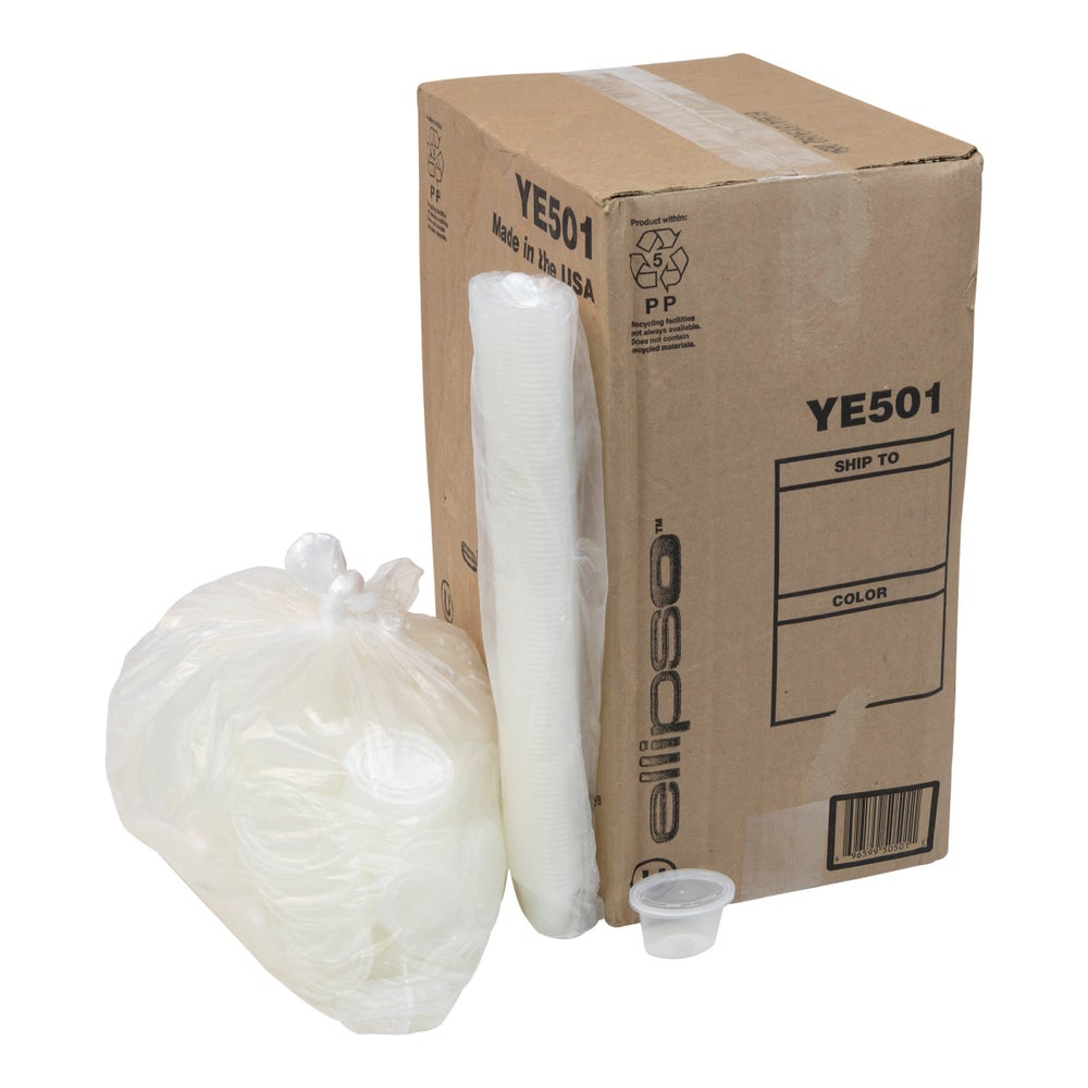 Newspring 1 Ounce Plastic Souffle Portion Cups, Black, with Lid, Microwave Safe, Polystyrene, 1 Ounce, 500 Ct Package, 2/Case