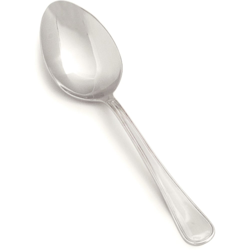 This solid spoon features heavy-duty, mirror-polished, 18-8 stainless steel construction with a hollow handle for a lighter and easier to handle utensil.