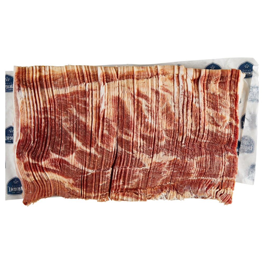 Wright Naturally Hickory-Smoked Bacon, Bulk, Regular Sliced, 6 Slices Per Inch, Frozen, 15 Lb Bag, 1/Case
