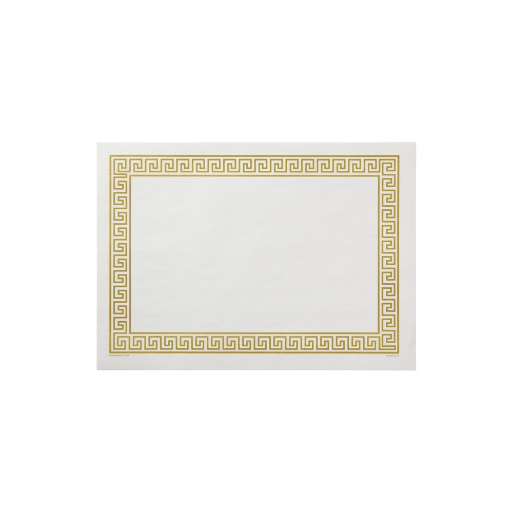 Ideal for use in a variety of table settings, these disposable placemats are made from 100 percent recycled paper. They have a decorative Greek key border while providing a sanitary barrier between food and the table.