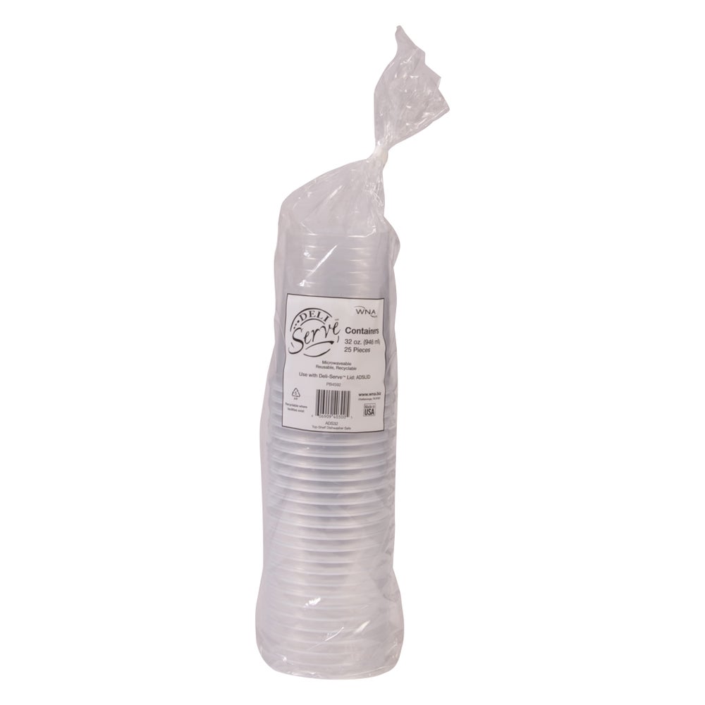 Pro-Kal 32 Ounce Microwavable Plastic Deli Containers, Clear, Polypropylene, 25 Ct Package, 20/Case
