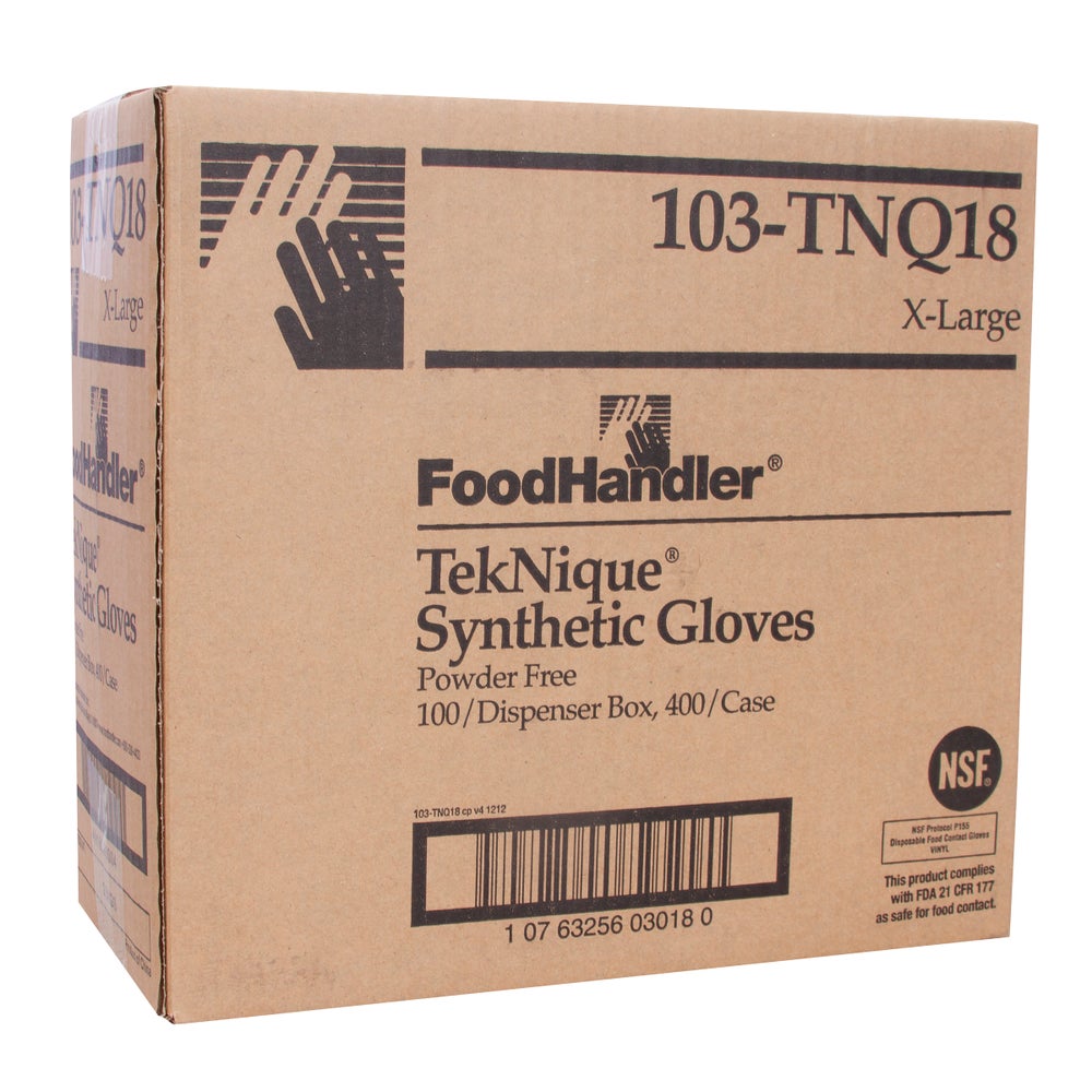 FoodHandler Teknique X-Large Powder-Free Synthetic Gloves, Natural, 100 Ct Box, 4/Case