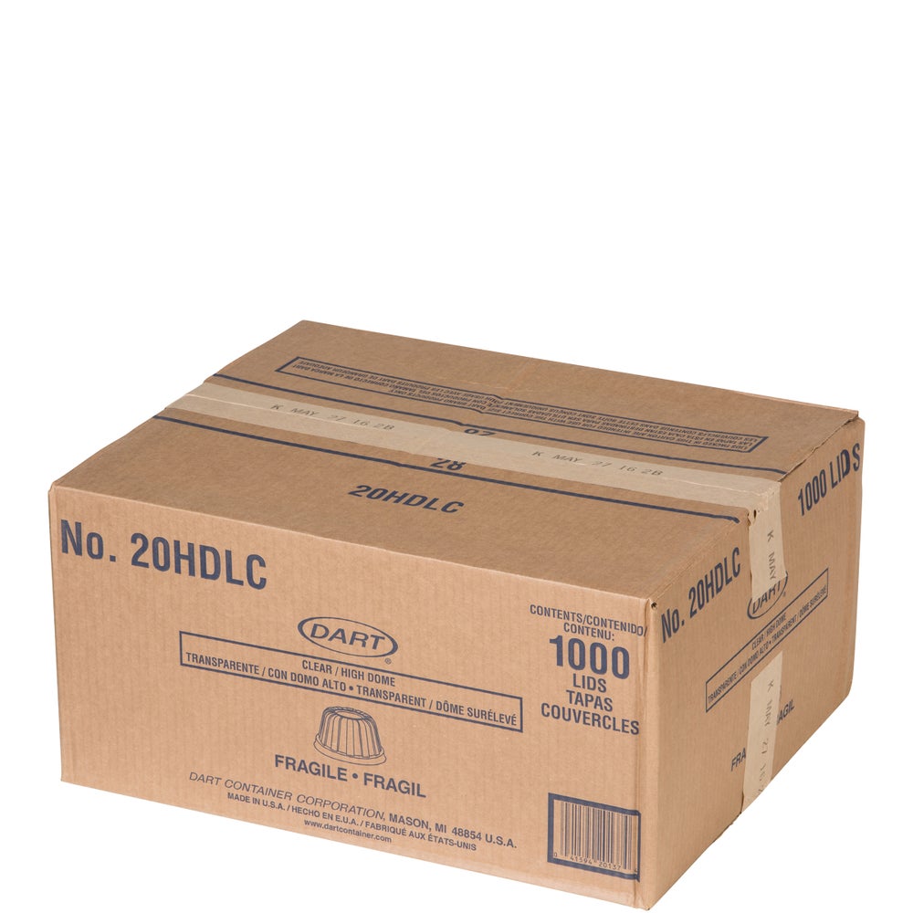 Dart Plastic High Dome Lids, Clear, Polystyrene, for 8/12/16 Ounce Containers & 5/6/8/10 Ounce Bowls, 50 Ct Package, 20/Case