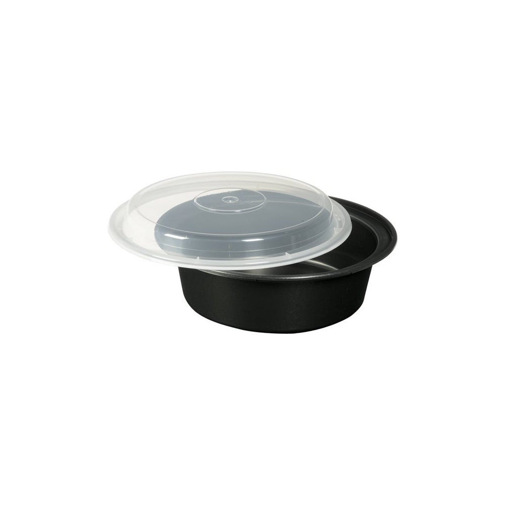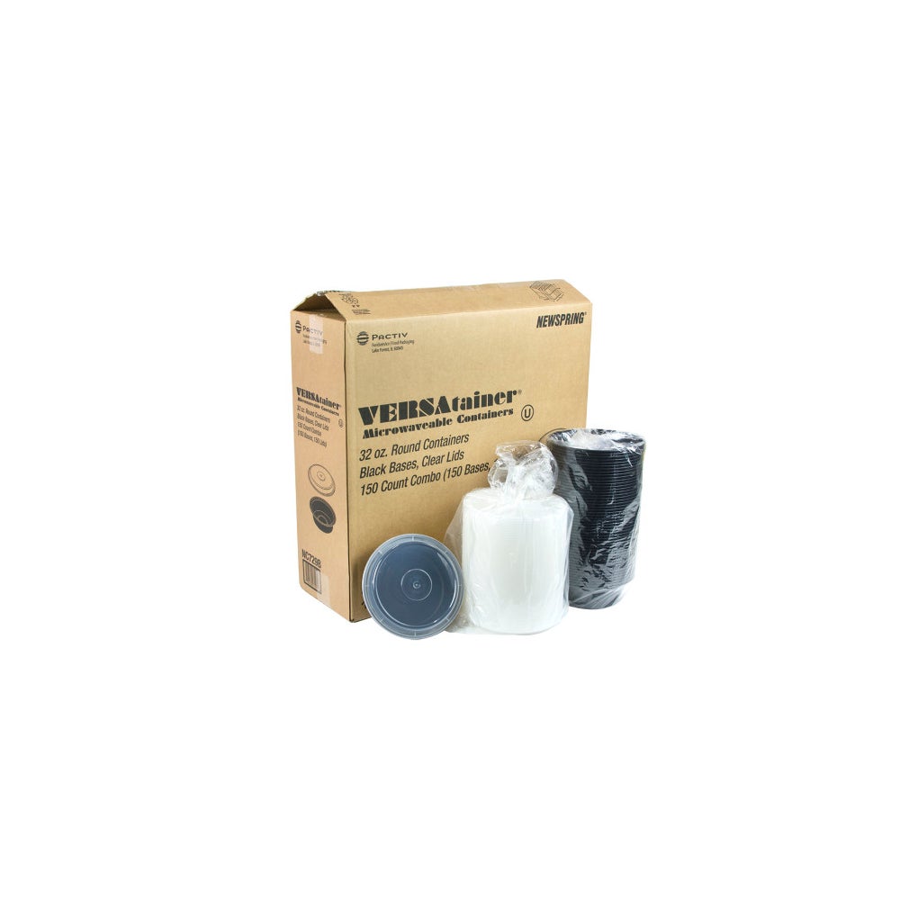 Versatainer 32 Ounce 7 x 2 Inch Microwaveable Plastic Containers, Black, with Lids, Polypropylene, Versatainer, 150/Case