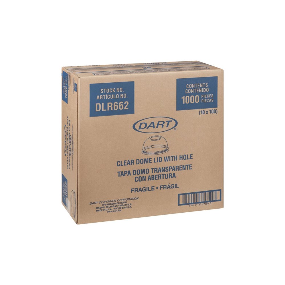 Dart Center-Hole Plastic Dome Lids, Clear, PET, for 12/14/16 Ounce Cups, 100 Ct Package, 10/Case