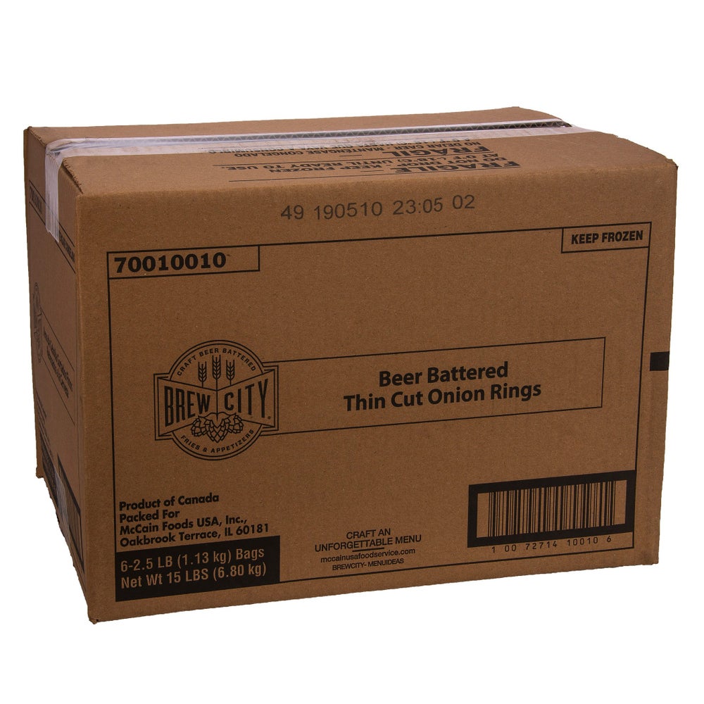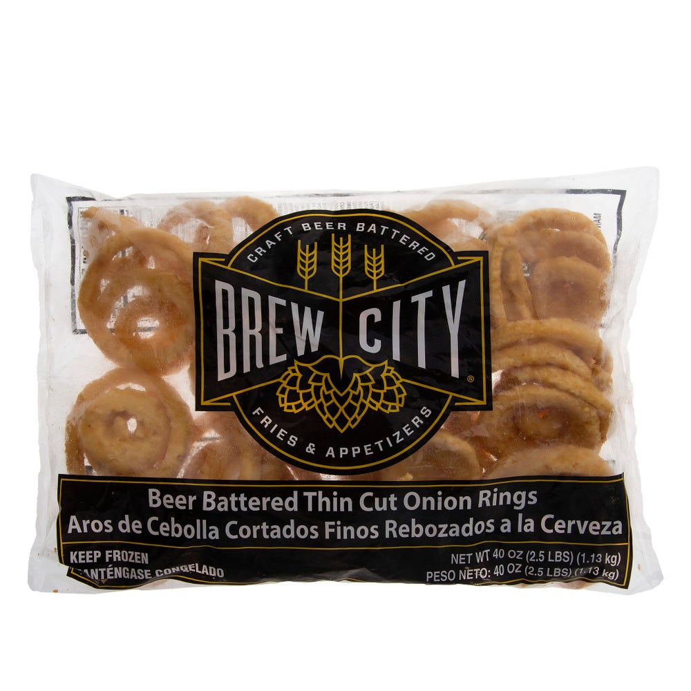 Brew City Beer Battered Sweet Yellow Onion Rings, Thin-Cut 3/8 Inch, Ovenable, IQF, 2.5 Lb Bag, 6/Case