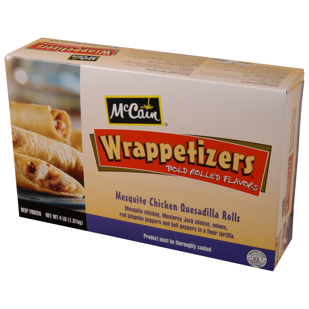 Quesadilla Rolls, Chicken, Mesquite, with Monterey Jack Cheese/Red Jalapeno Peppers/Onions, Frozen, 4 Lb Box