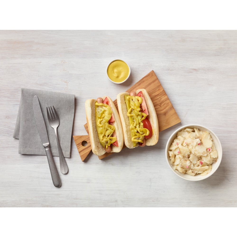 - The relish is ideal as a topping for hot dogs and burgers, as well as brats, and hot or cold sandwiches. They add a punch of color and flavor to potato or macaroni salad. It's a popular component of relish trays and salad bars.