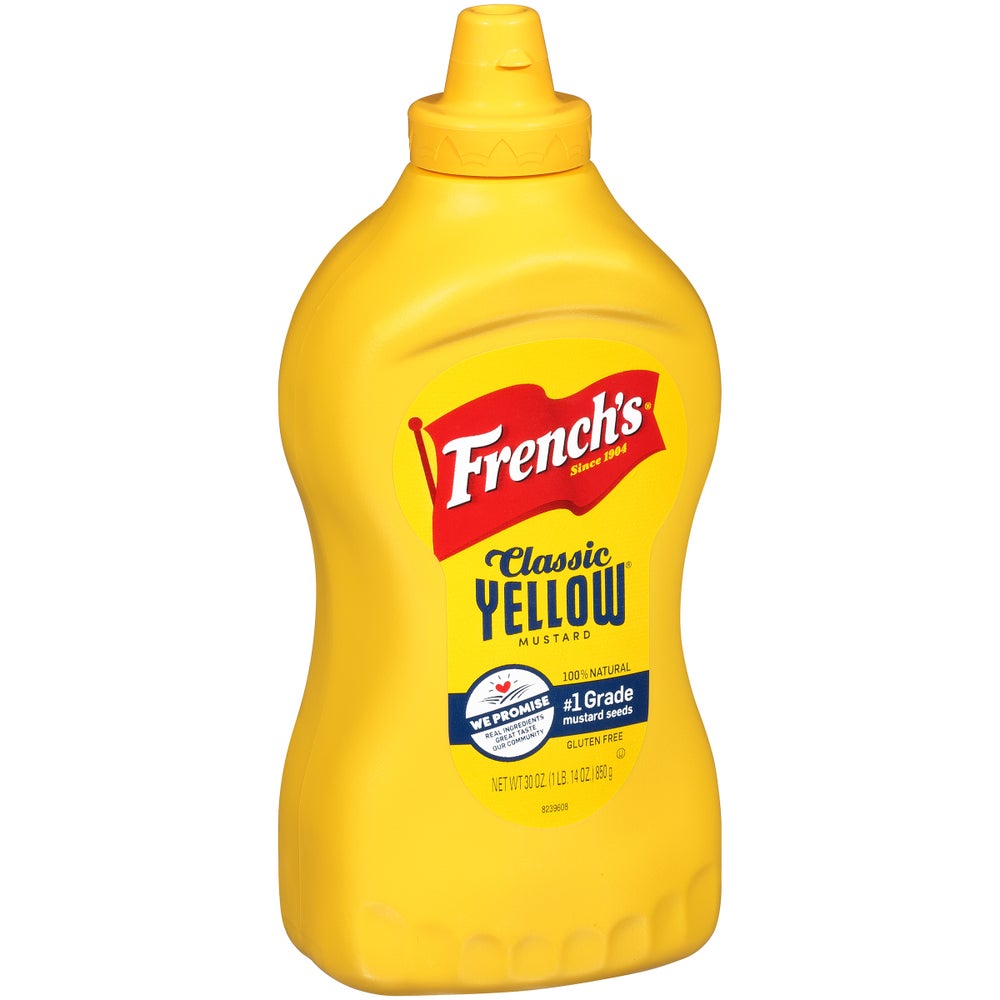 French's Classic Yellow Mustard, Squeeze Bottles, 30 Oz Bottle, 12/Case