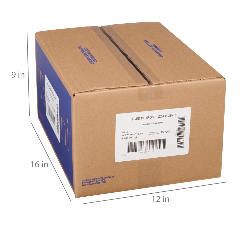 Tavolini Detroit Pizza Cheese Blend, 70% Low Moisture Part-Skim Mozzarella/30% Monterey Jack Blend, Diced, 5 Lb Bag, 4/Case