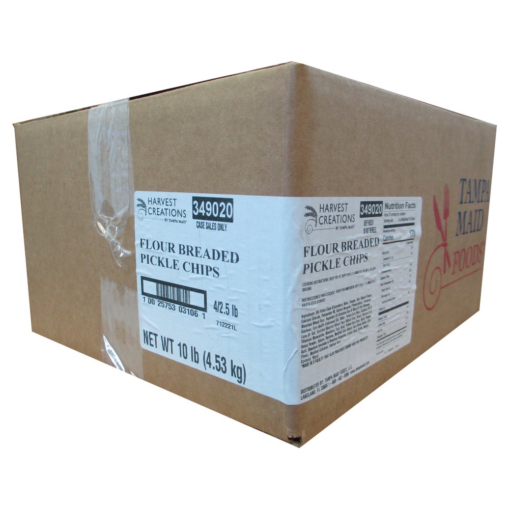 Harvest Creations Flour Coated Crinkle Cut Pickle Chips, Frozen, 2.5 Lb Bag, 4/Case