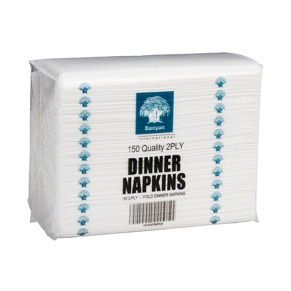 Banyan 2-Ply Embossed Dinner Napkins, White, 1/8 Fold, 14.5 x 16.5 Inch, Poly-Packed, 150 Ct Package, 20/Case