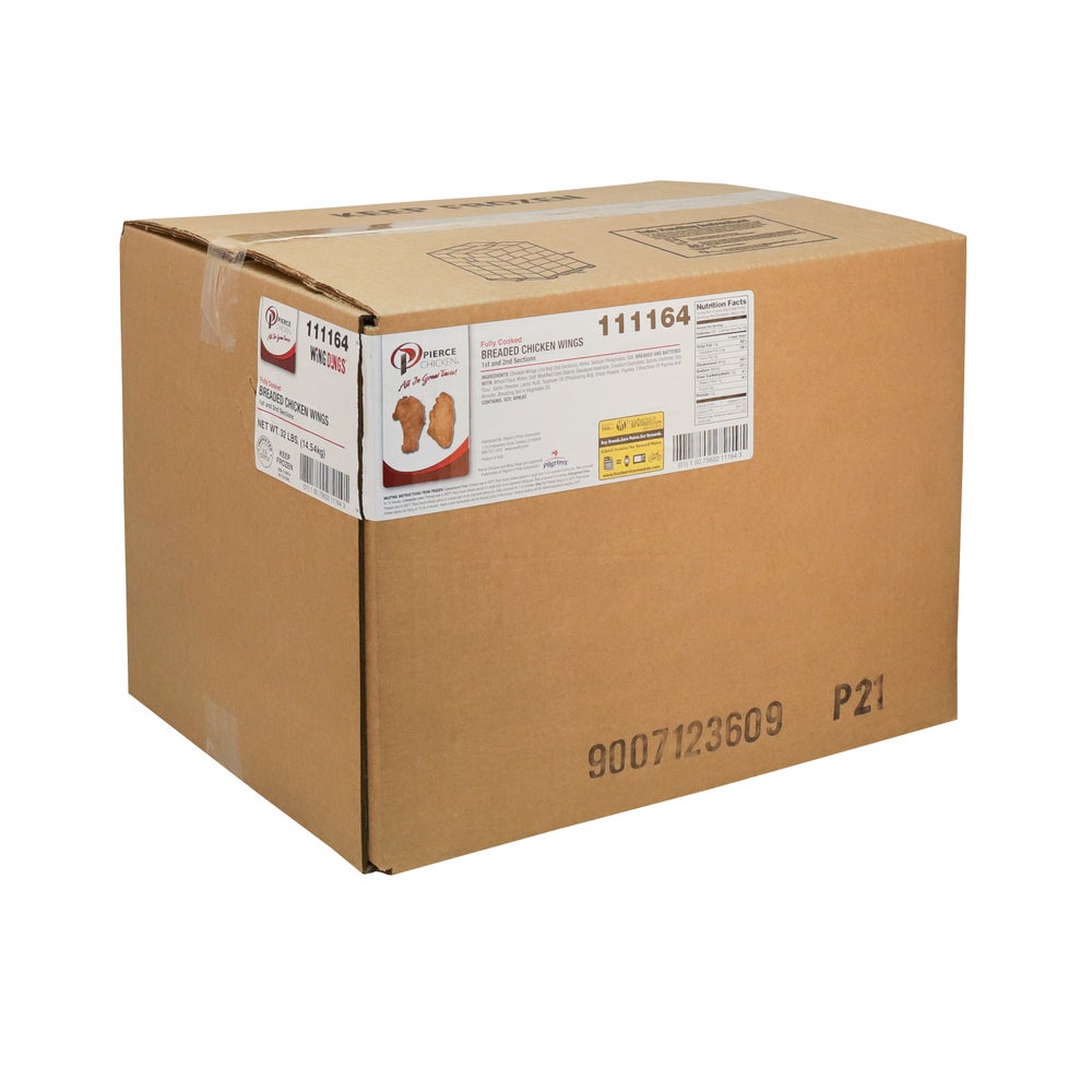 Pilgrim's Pride Breaded Bone-In Chicken Wings, Split, 9-13 Count per Pound, Cooked, Frozen, 4 Lb Bag, 8/Case