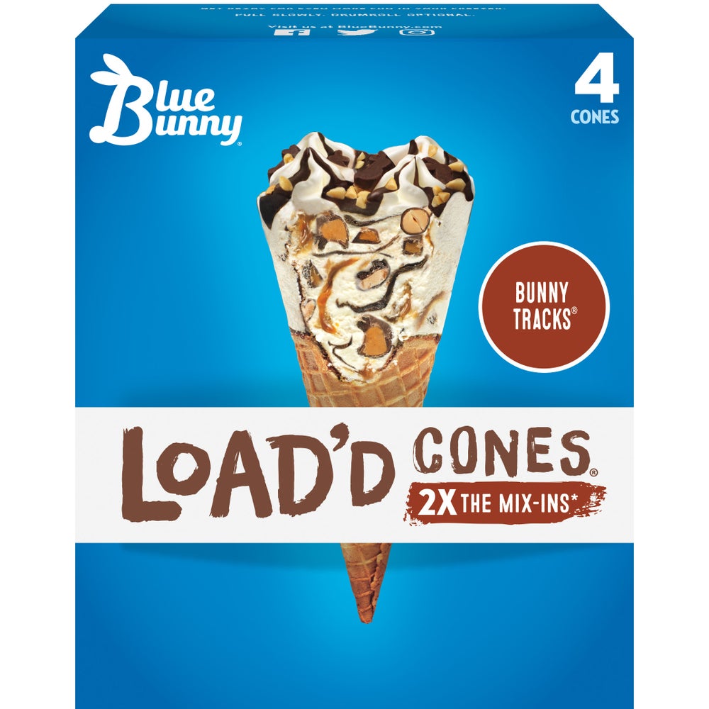 Blue Bunny Bunny Tracks Load'd Ice Cream Cones, Frozen, 4 Fluid Ounces, 4 Ct Box, 6/Case