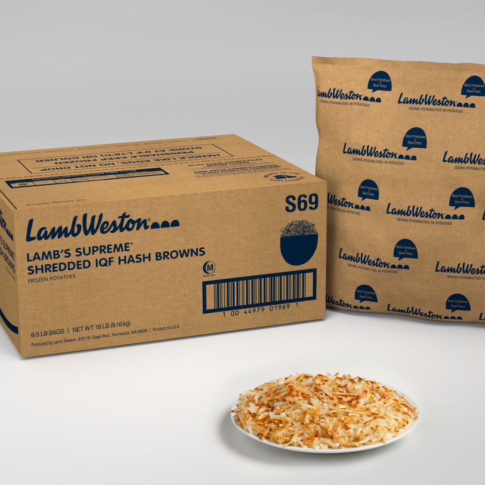 Lamb's Supreme Shredded Hash Browns, IQF, 3 Lb Bag, 6/Case