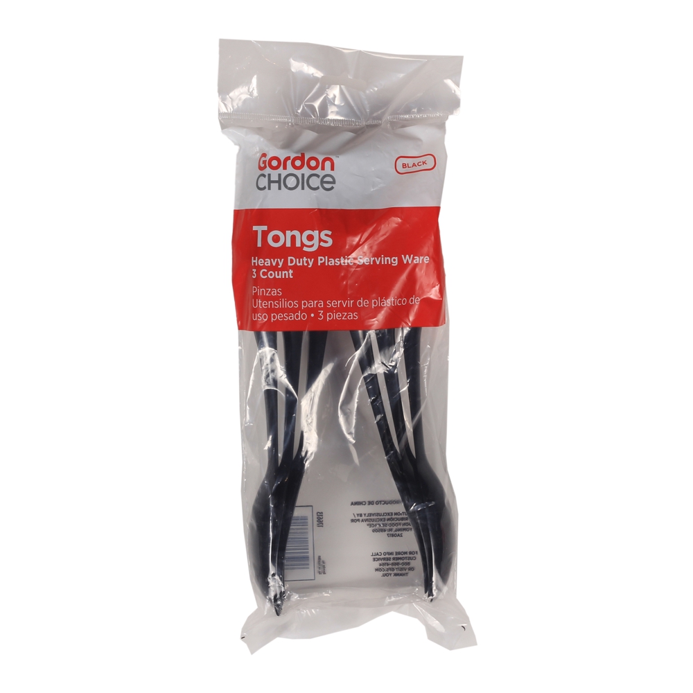 Tongs, Serving, 9.25 Inch, Heavyweight Plastic, Black, Polystyrene, 3 Ct Package