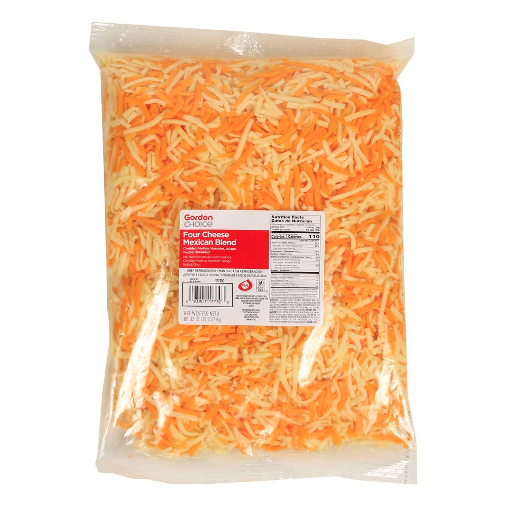 Cheese Blend, Mexican, Cheddar/Muenster/Fontina/Asiago, Feather Shredded, 5 Lb Bag