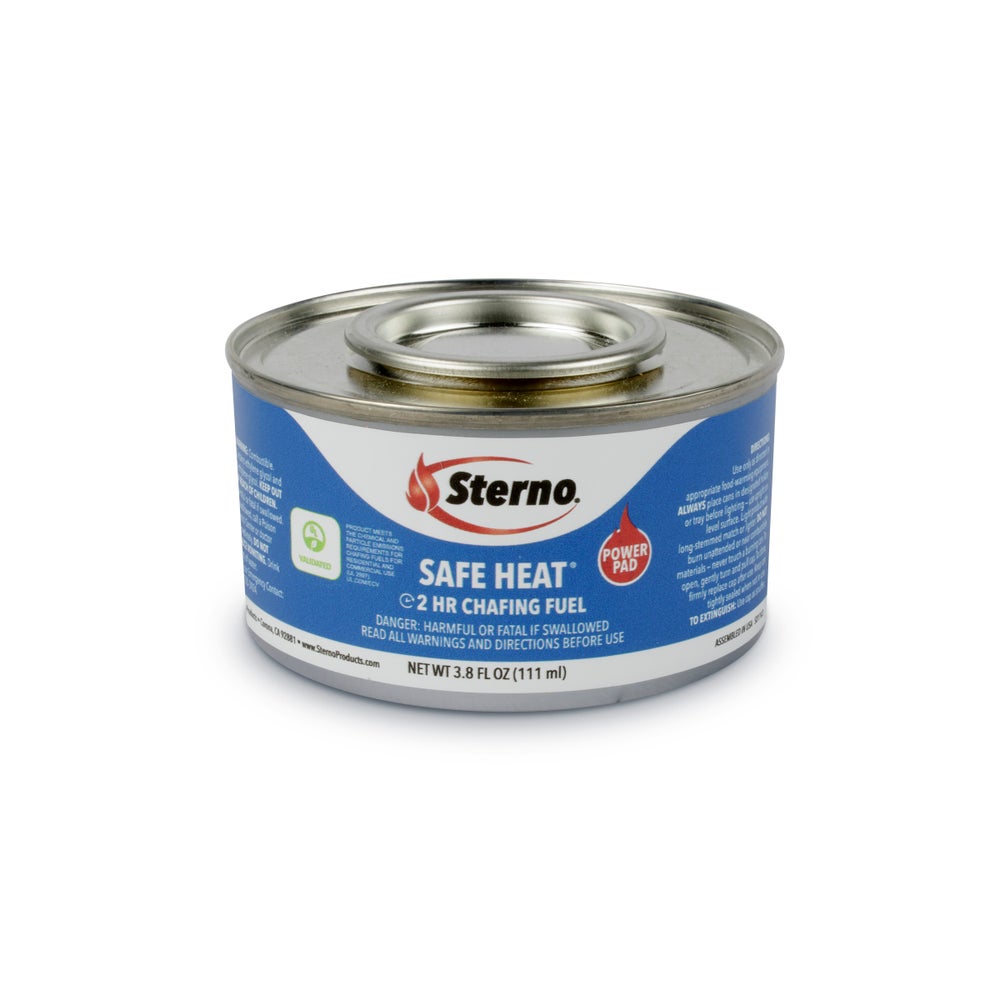 This chafer fuel features PowerPad technology which provides the high heating power of a gel with the safety and efficiency of a wick. The wide-pad technology produces a broad, hot flame with consistent height and the liquid fuel is sealed inside a steel canister that remains cool to the touch. Each can provides up to two hours of burn time.