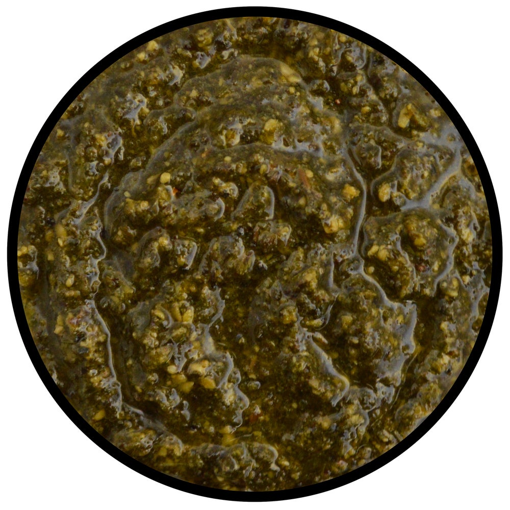 This nut-free pesto sauce highlights the crisp flavors of basil, Parmesan, and Romano cheeses.