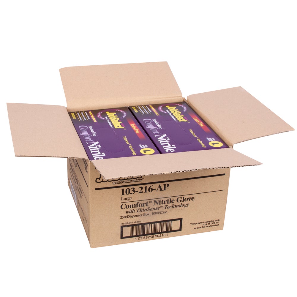 JobSelect Large Powder-Free Nitrile Gloves, Grape, 250 Ct Box, 4/Case