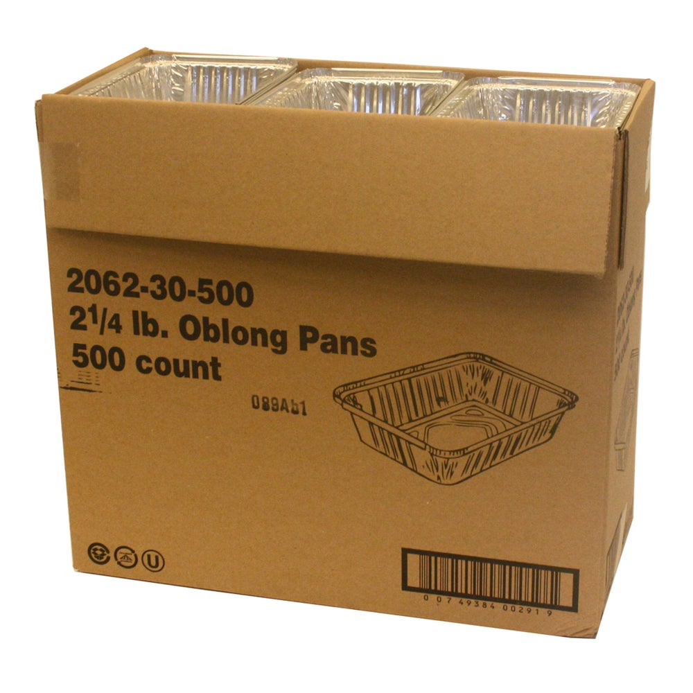 These oblong foil containers have a 30 gauge thickness and an interrupted vertical curl flange rim style. They go from freezer to oven and are ideal for salads and single entree dishes.