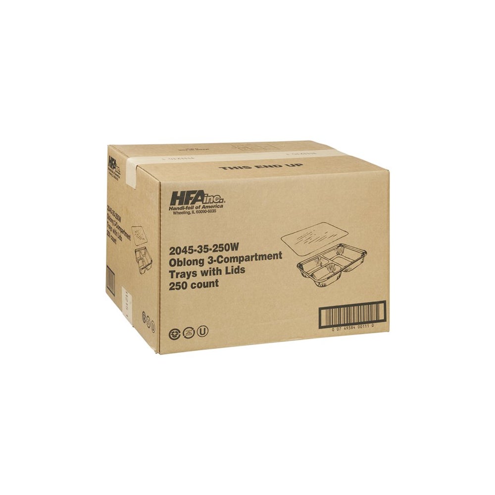 HFA 8.5 x 6.38 x 1.5 Inch Foil Containers, 3-Compartment, with Foil Board Lid, 250/Case