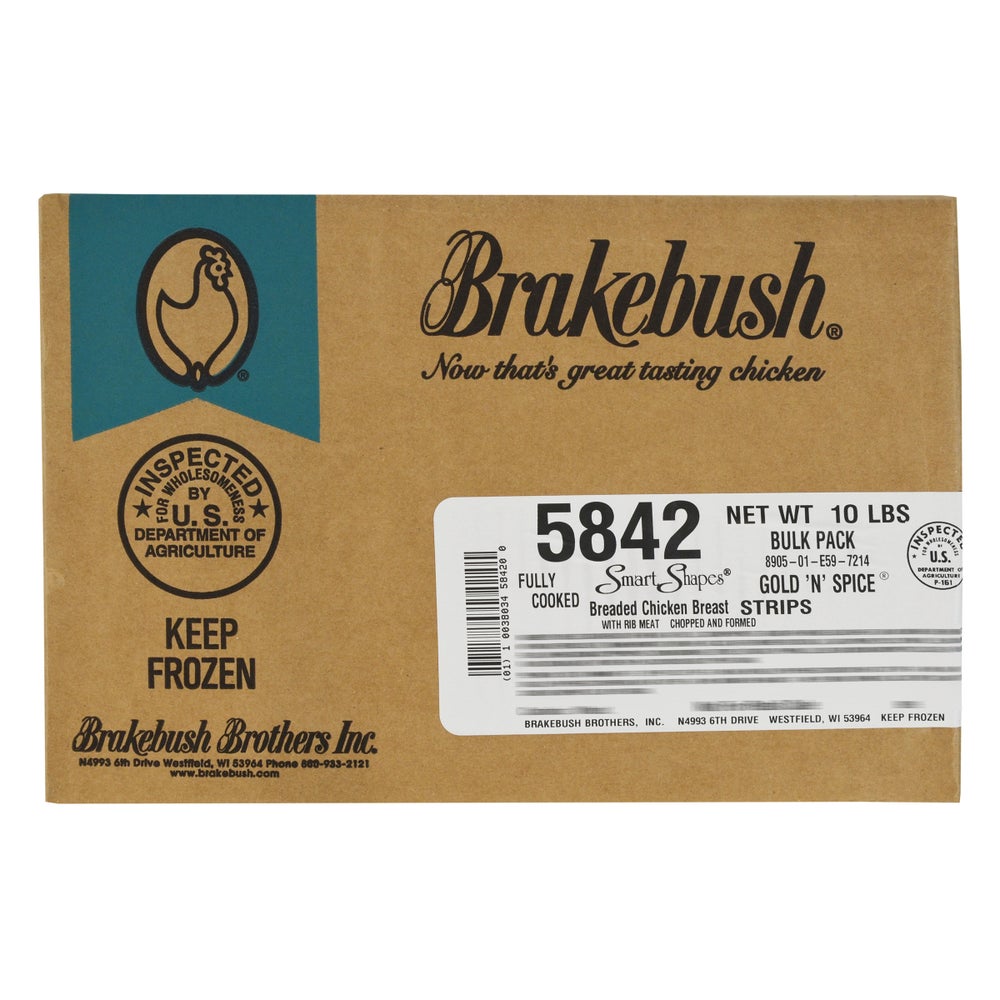 Brakebush Breaded Chicken Breast Strips, Cooked, 1.6 Ounce, Frozen, 1.6 Oz Bag, 100/Case