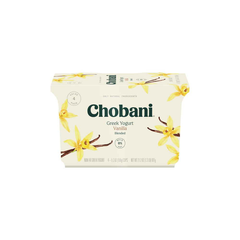 Chobani Vanilla 0% Greek Yogurt, 4 Ct Package, 6/Case