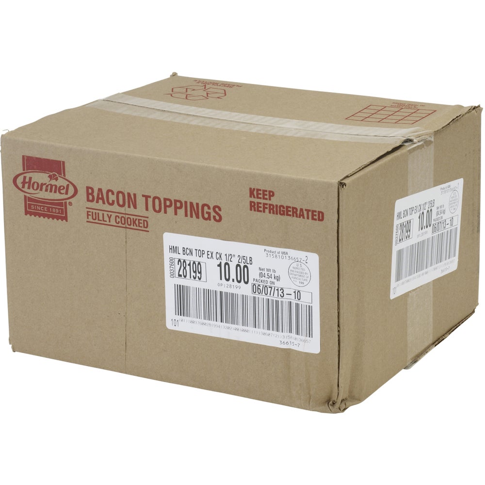 Hormel Bacon Diced, 1/2 Inch, Extra Cooked, Fresh, 10 Lb Bag, 1/Case