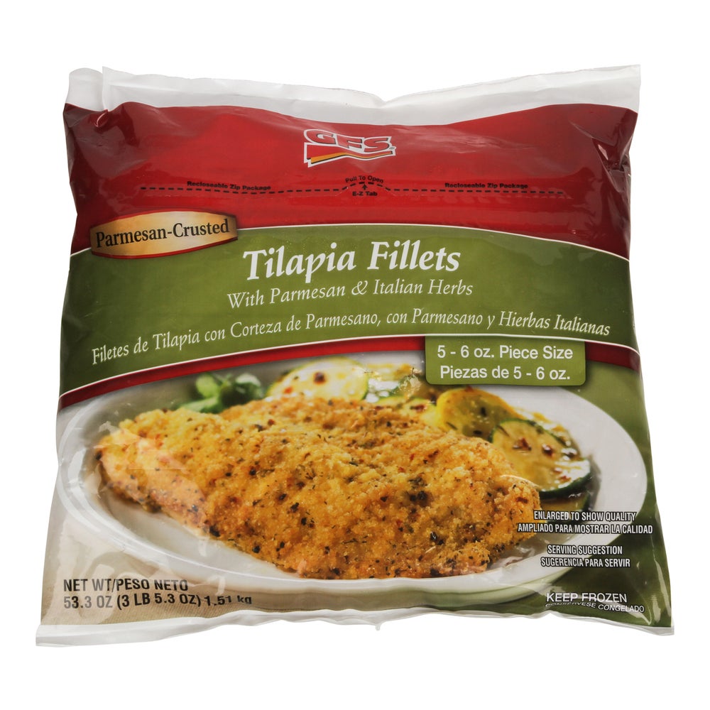 Gordon Choice Parmesan Breaded Tilapia Fillets, Farm-Raised, 5-6 Ounce , Raw, IQF , 3.33 Lb Bag, 3/Case