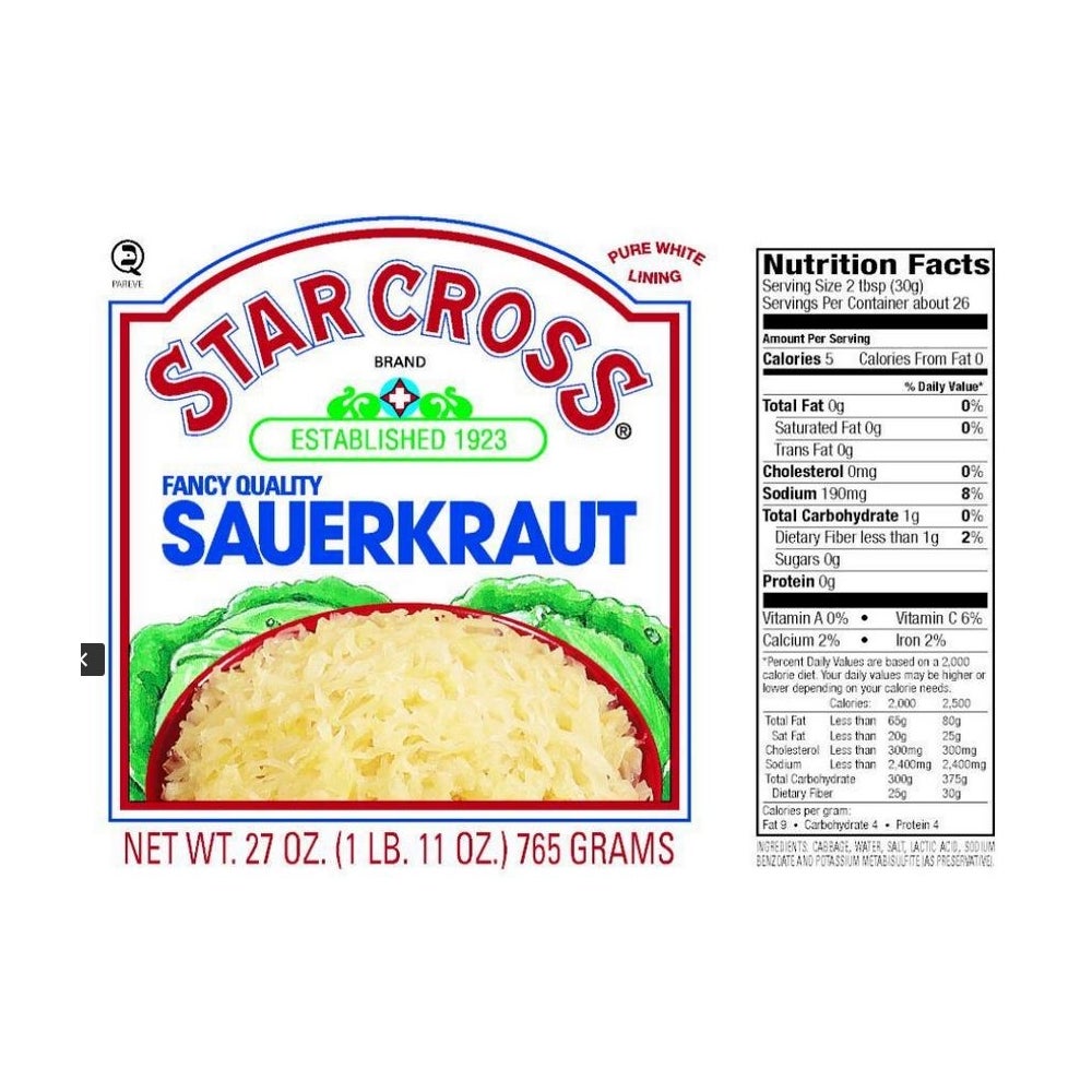 Star Cross Shredded Sauerkraut, Fancy, 27 Oz Can, 12/Case