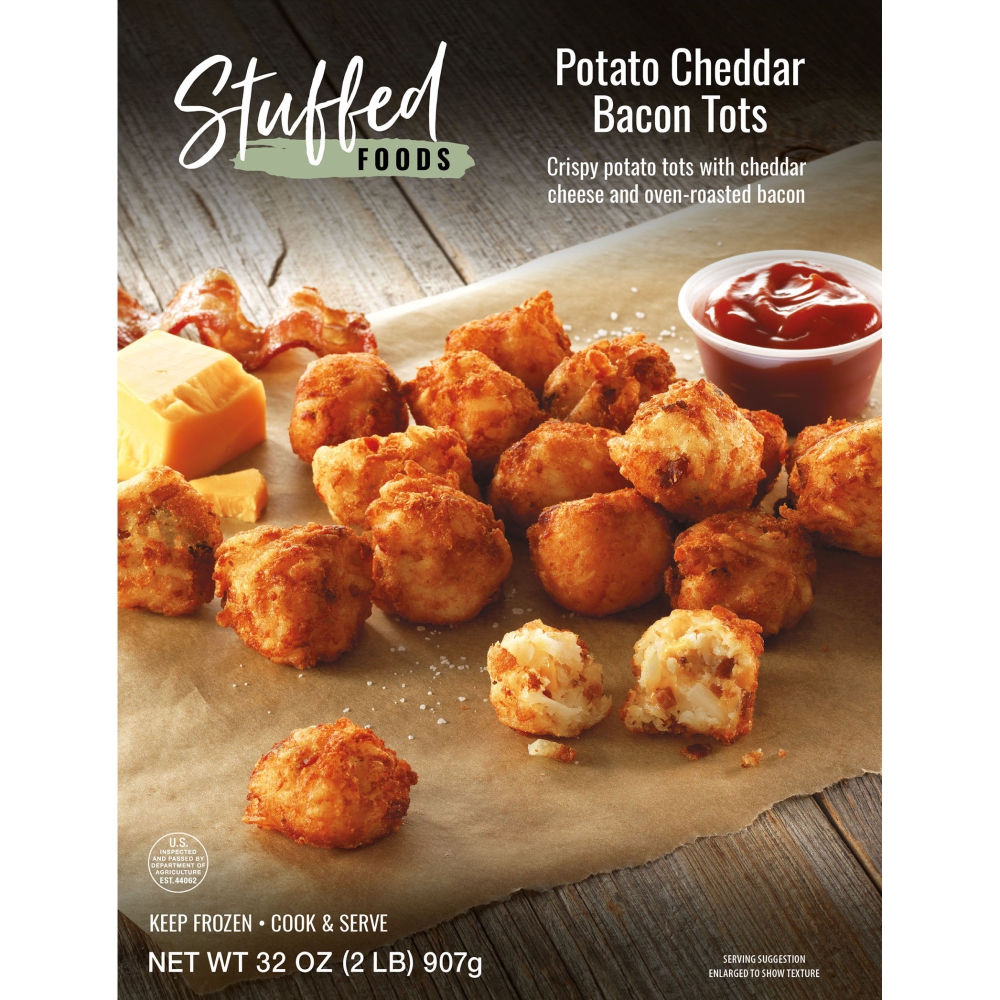 Stuffed Foods Cheddar & Bacon Stuffed Tater Tots Potatoes, Frozen, 2 Lb Box, 12/Case