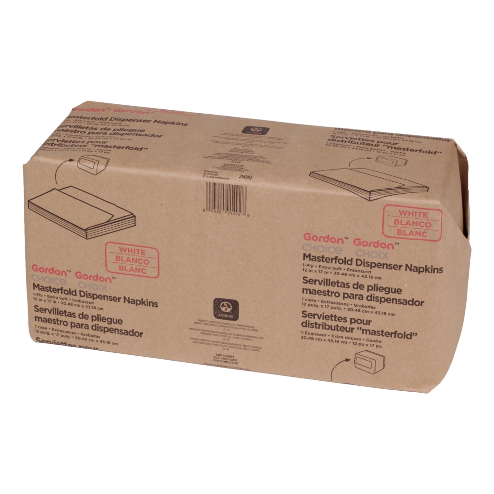 Napkins, Dispenser, 1-Ply, Embossed, White, 12 x 17 Inch, 500 Ct Package