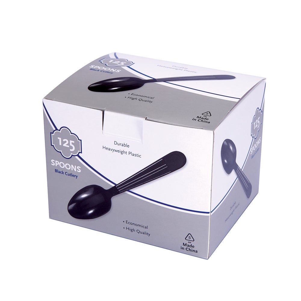 Finesse Heavyweight Plastic Spoons, Black, with Full-Length Handles, Polypropylene, 125 Ct Box, 8/Case