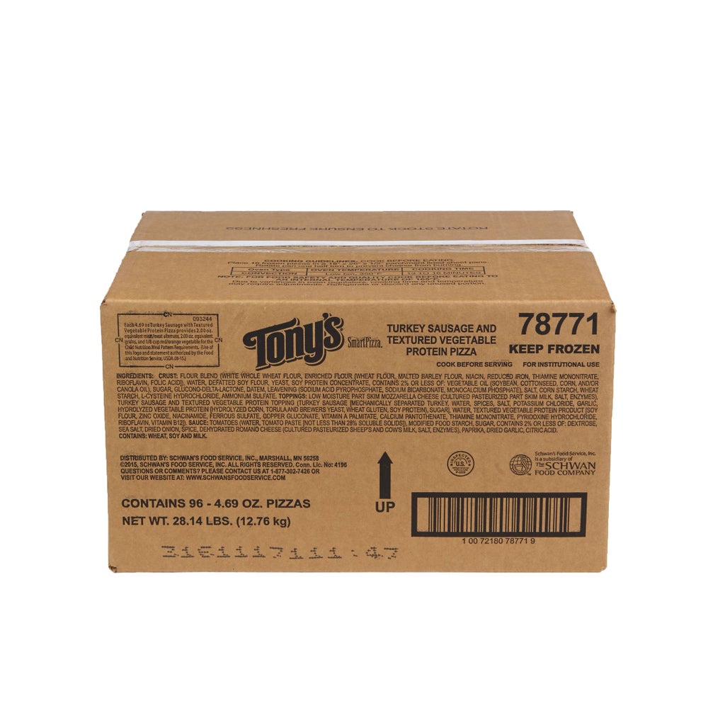 Tony's Turkey Sausage Pizza, 100% Mozzarella, Reduced-Fat, Whole Grain, 4 x 6 Inch, Frozen, 4.69 Oz Package, 96/Case
