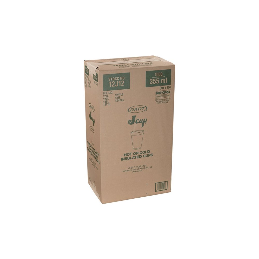 Dart 12 Ounce Foam Hot & Cold Cups, White, Tall, Beaded, Polystyrene, 25 Ct Package, 40/Case