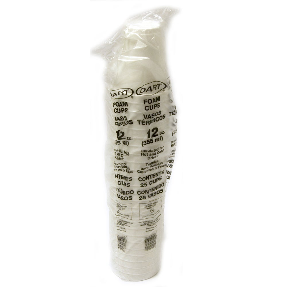 Dart 12 Ounce Foam Hot & Cold Cups, White, Tall, Beaded, Polystyrene, 25 Ct Package, 40/Case
