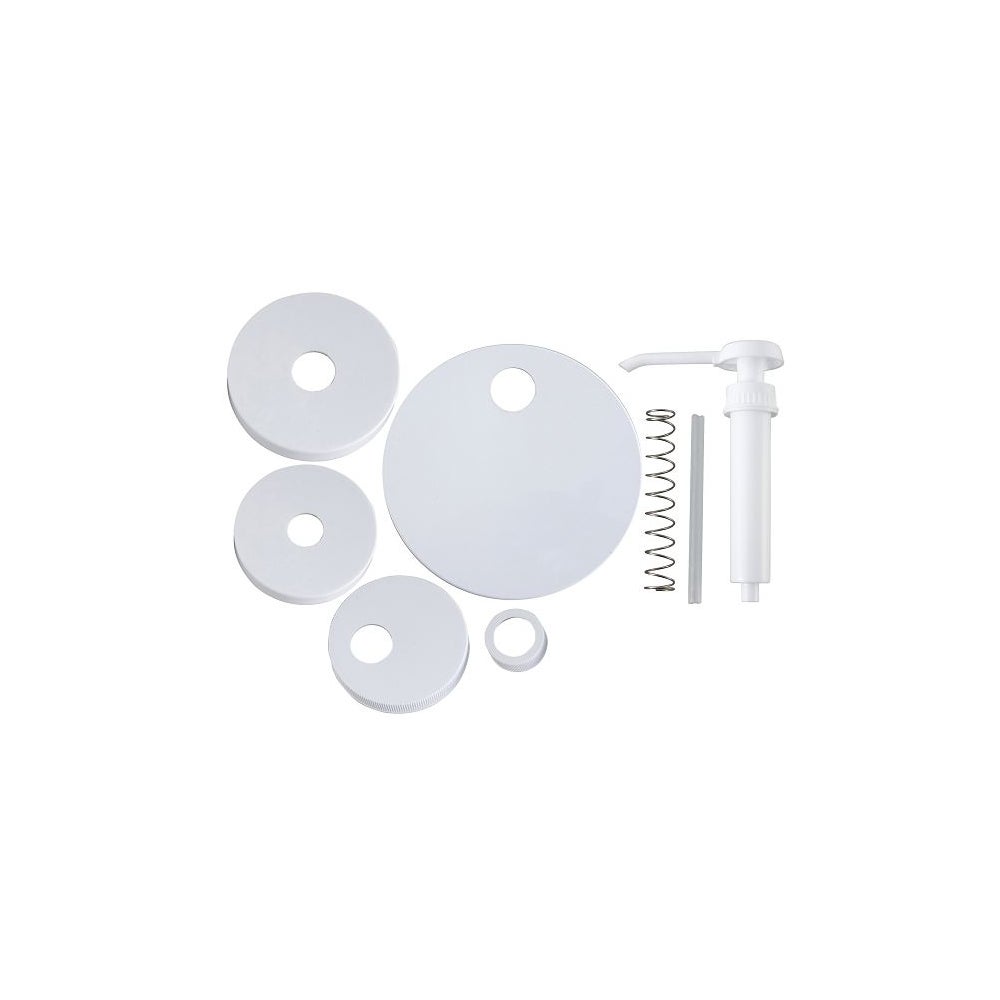 This plastic pump kit includes a plastic cap size #10 and a dispensing pump. It has a removable cap without the calibrated plunger and can be used with grit and pumice substances.