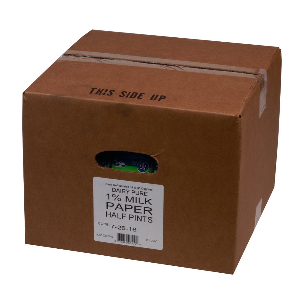 These individually sized, half-pints of one percent milk are packaged in paper cartons with eye-catching graphics and activities printed on the side panels.