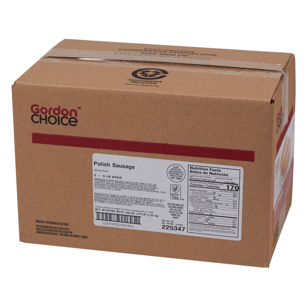 Gordon Choice Polish Beef & Pork Sausage, 6 Inch, Links, 8 Count Per Pound, Cooked, Frozen, 5 Lb Bag, 2/Case