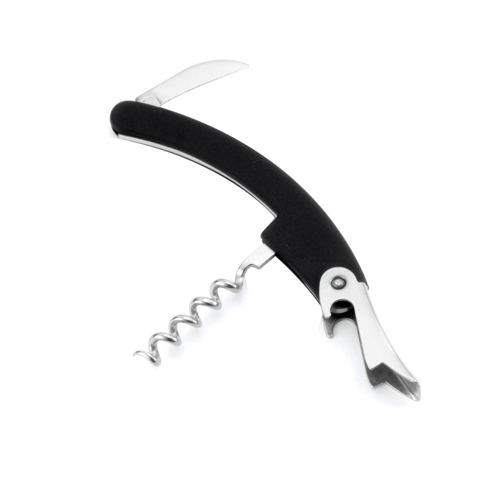 TableCraft Waiter's Corkscrew Opener with Knife, Stainless Steel, Black Rubber-Like Handle, 1/Each