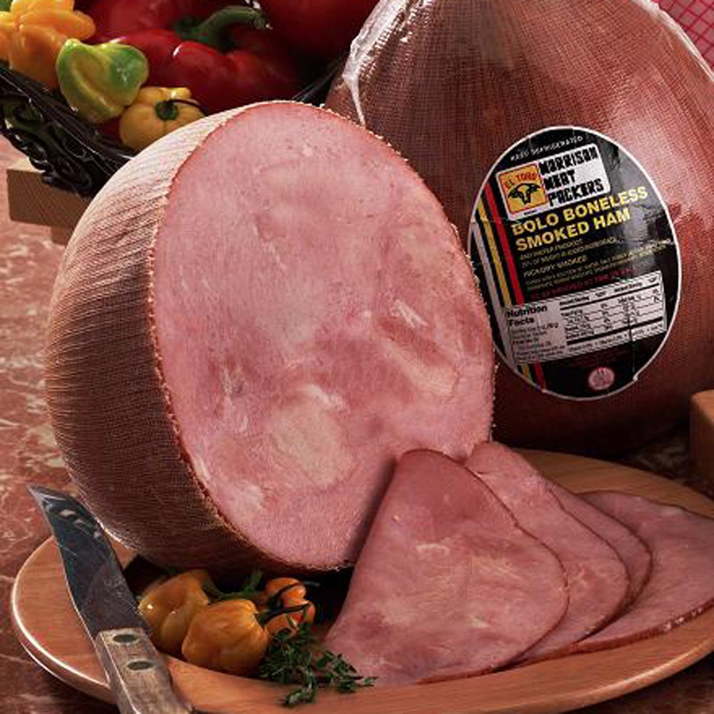 Morrison Smoked Water-Added Round Bolo Hams, Boneless, 15 Pound Average, Fresh, 15 Lb Avg Each, 2/Case