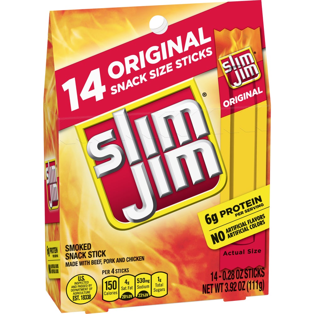 Slim Jim Original Meat Stick Snacks, 3.92 Ounce, 14 Ct Box, 7/Case