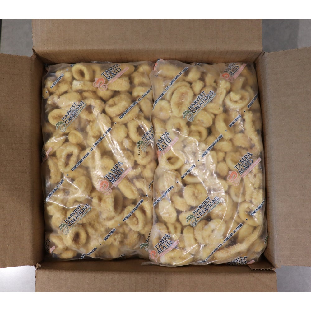 Tampa Maid Seasoned Lightly Breaded Calamari Rings, Raw, Frozen, 2 Lb Package, 6/Case