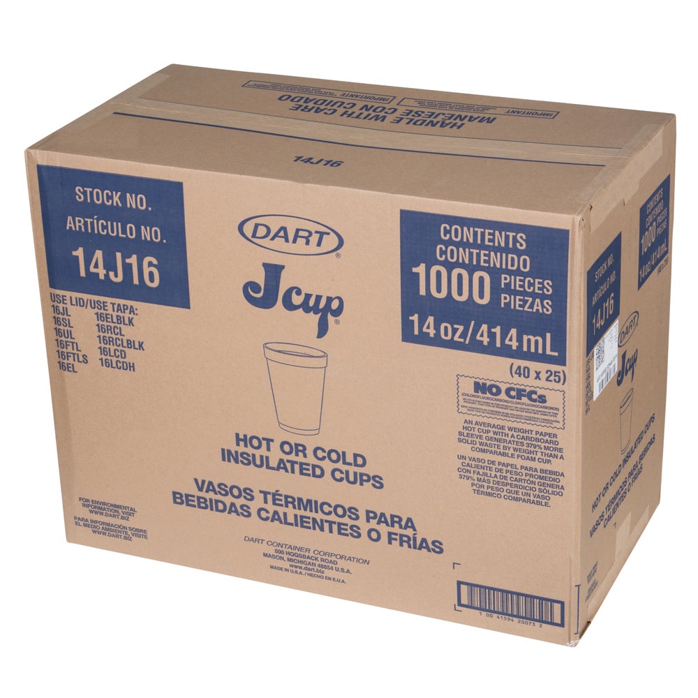 Dart 14 Ounce Foam Hot & Cold Cups, White, Beaded, Polystyrene, 25 Ct Package, 40/Case